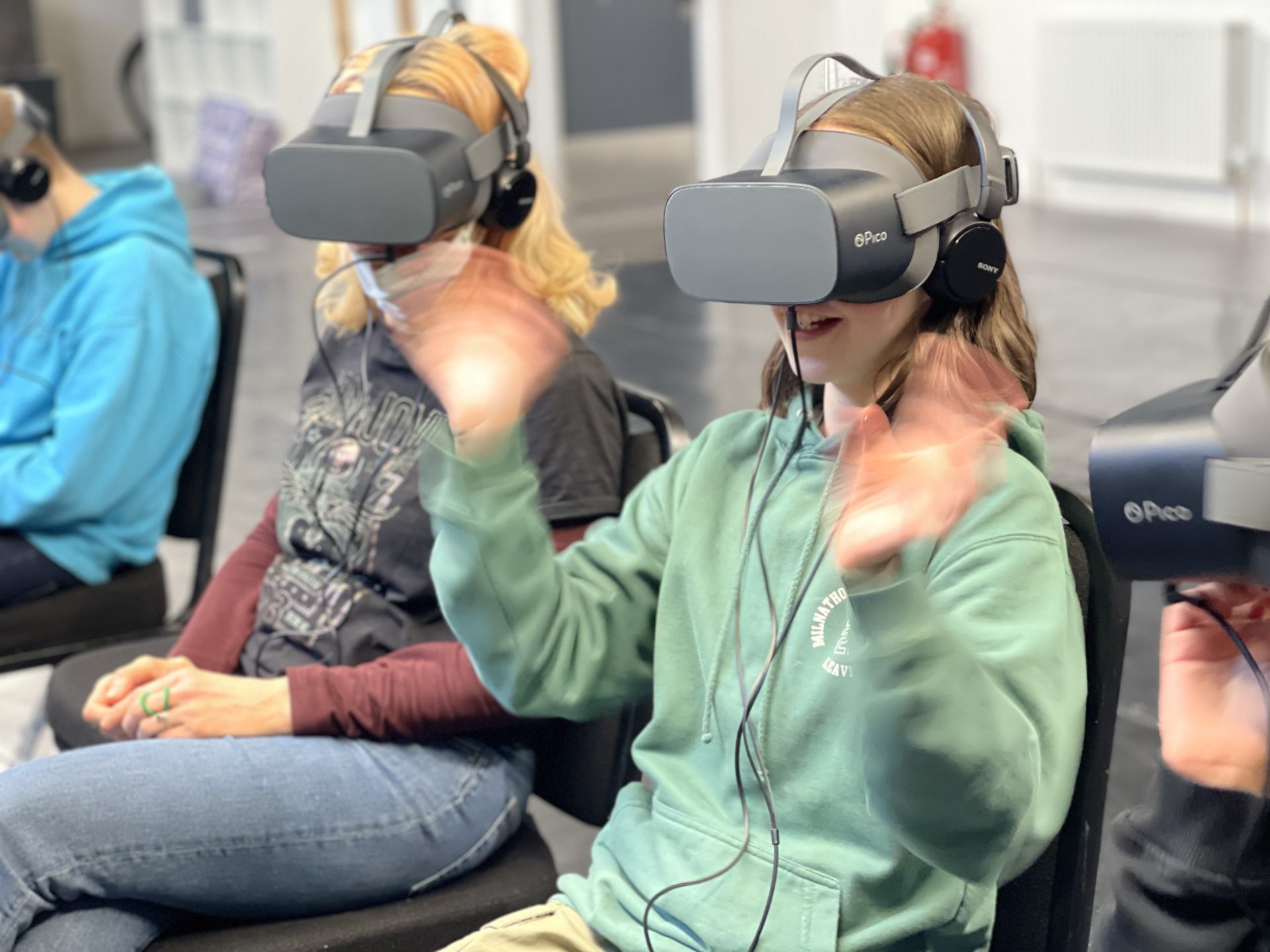 • Visiting five schools, taking VR headsets to children aged P4-P7 to show them different variations of BOUNCE in VR and get feedback. Some of the schools also saw the live version to compare. Two of the schools were with children in their Deaf Provision Units for VR and BSL feedback.
