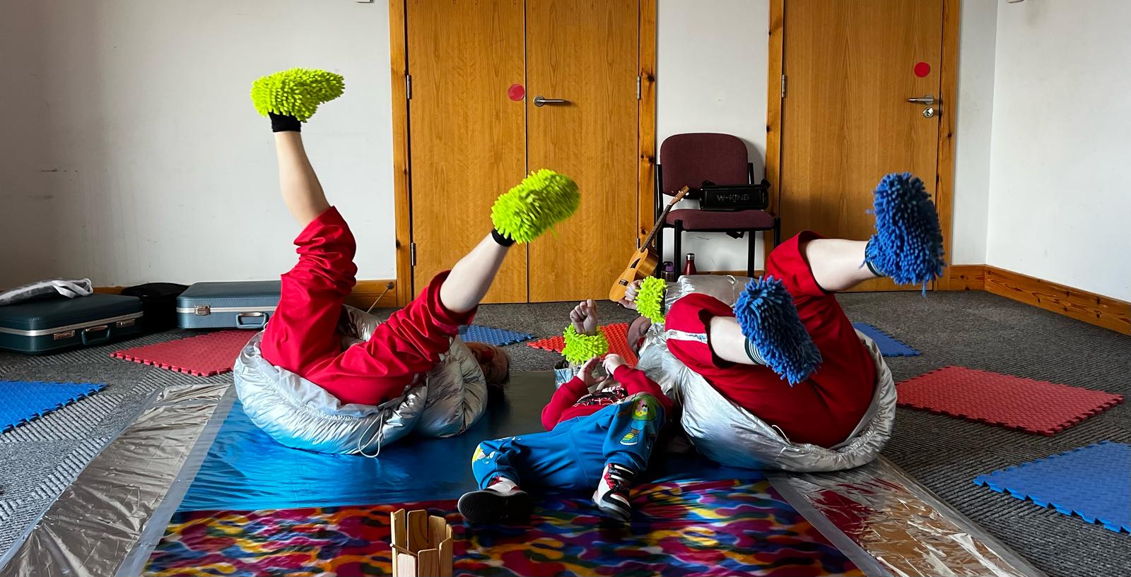 We use the practice of theatre clown to create sessions where our participants can feel safe, relaxed and build confidence in creative and imaginative play alongside social interaction and engagement. We use music, objects, instruments, play, humour and interaction to allow everyone to join in.